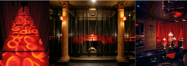 吸血鬼の居城として伯爵の支配下に置かれた館内は、ミステリアスな魅力に溢れ、ここが銀座のビルの一角だと忘れてしまうほど。