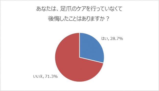 ■4人に1人以上(28.7%)が足爪をケアしていなくて後悔した事がある。