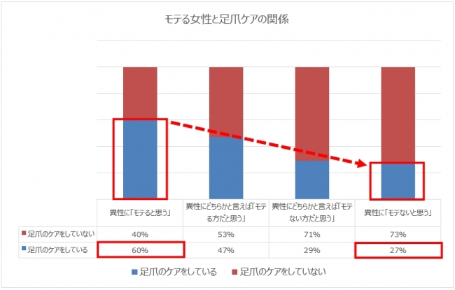 「足爪をケアしている女性のほうがモテる」という結果が明らかになったのではないでしょうか。