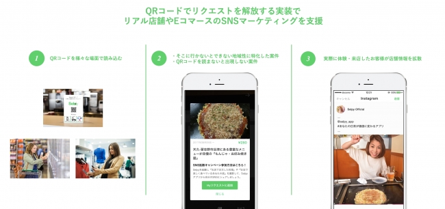 店舗やネット通販などのお客様にSelpyをご利用して頂くきっかけになると共に、そこからSNSの拡散によるリーチを見込め、集客に繋げることができます。