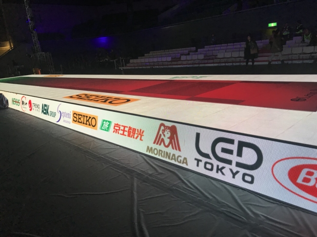 12月7日から10日にかけて東京・駒沢オリンピック総合運動場体育館にて開催された同大会において、ピストと呼ばれる長さ18mの試合台の床面と側面全てにLEDディスプレイを敷設。