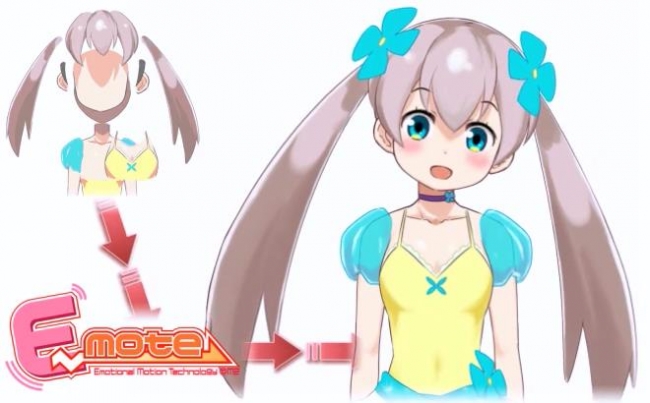 『E-mote』(えもーと)は、キャラクターの2Dイラストからわずかなステップでゲームや映像制作に使える滑らかで立体的なアニメーションを作成できる弊社独自のエンジンです。立ち絵のキャラクターの表情、向き、手足の動作を簡単かつダイナミックに動かすことができ、3Dモデルでは難しいイラストの質感をそのまま再現することができます。無償版の『えもふり』ではより気軽に、簡単に動画出力が可能です。