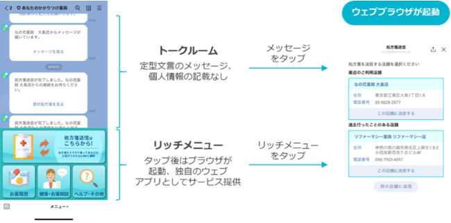 ファーマシフトでは、昨年11月よりメディカルシステムネットワークが運営するなの花薬局10店舗でLINE公式アカウントを活用した「かかりつけ薬局化支援サービス」の試験運用を行ってきました。3月には機能追加を行った正式版をリリースし、デジタル薬局コンソーシアム(※)参画企業より順次導入を進めております。