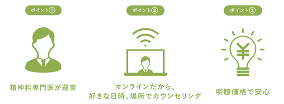 精神医学及び心理学の膨大な知見を基盤とし、確かな経験を持つ医師の監督のもと、こころの悩みを持つすべての人たちに信頼できるカウンセリングを届けるプラットフォームです。