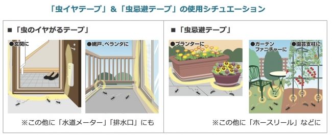 虫にやさしく、なれないときに「虫のイヤがるテープ」「虫忌避テープ」