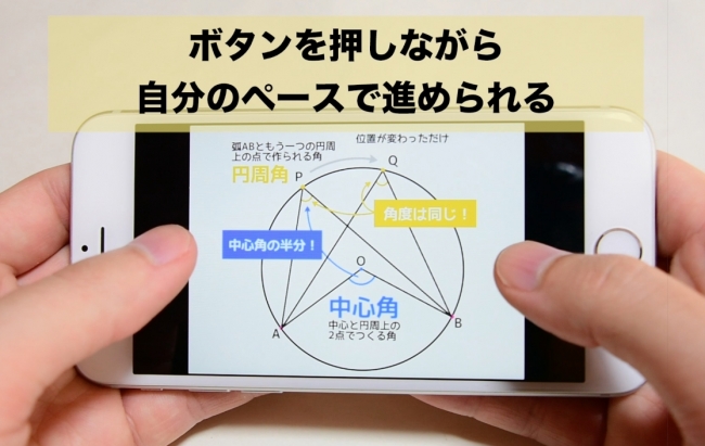 黒板のメモと授業を録画しただけのオンライン学習とは違い、「先生が黒板に書くのを待つ」というムダな時間が一切ありません。ボタンを押しながら自分の理解にあわせて進んだり、戻ったりが自由自在。東大合格者が監修した教材の中に必要な情報はすべて入っているので、先生が口頭で解説する必要もないのです。