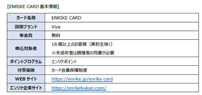 との提携クレジットカード『ENRIKE CARD』の募集を2021年12月10日より開始いたします。