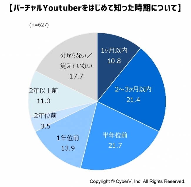 バーチャルYoutuberを知った時期は、“半年以内”が全体の過半数に