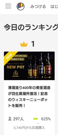 1位となりました。3日目に支援総額1,000万円、応援サポーター 500名と多くの方々よりご支援をいただき、日々その人数も拡大中です。