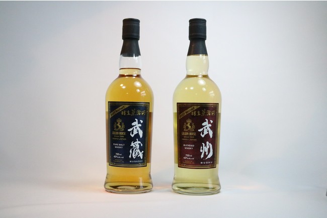 ゴールデンホース武蔵:貯蔵年数の異なる複数のスコットランド産モルトをブレンドした味わい深い商品です。華やかで奥深い香りとそれぞれのモルトの特徴が顔を覗かせる複雑な味わいをお楽しみください。