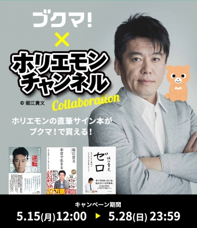 本に特化したフリマアプリ「ブクマ!」を運営する株式会社Labit(東京都渋谷区,代表取締役 鶴田浩之)は、堀江貴文氏がMCを務めるYoutube・ニコニコ生放送の番組「ホリエモンチャンネル」との連動企画で、堀江貴文氏の直筆サイン本の新刊購入ができるキャンペーンを、5月15日(月)から実施いたします。