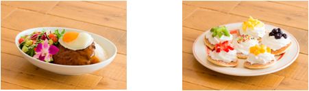 ハワイアンロコモコ(1,450円)   ハワイアンレインボーパンケーキ(1,450円)