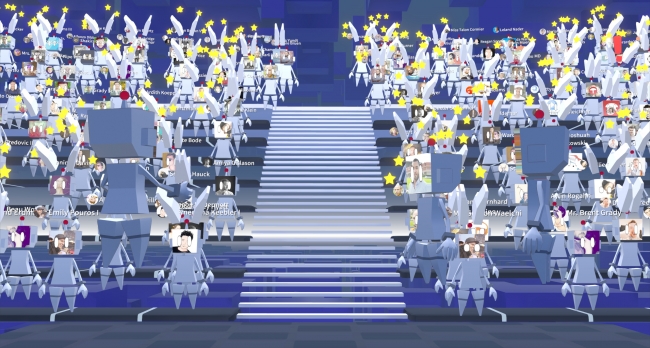 特徴としては、イベントの主催者側と参加者をシステム的に区別しており、ステージ登壇やマイク機能、スクリーン投影などイベント開催に適した機能をそろえたプラットフォームとなっています。
