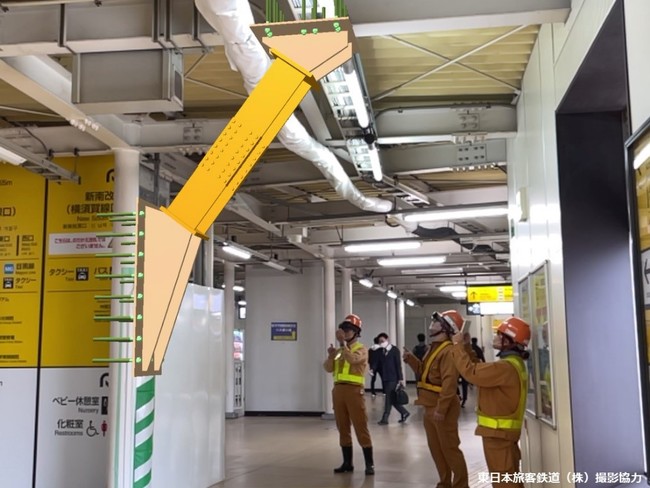 ホーム増設工事では、旅客の仮設通路内に補強梁が露出するため、旅客者の視線での作業計画が必要になります。複雑な施工手順をMR投影で可視化し、複数の作業員や職員で確認することで、実際の作業のスケール感や旅客への影響度を確認することができ、より良い施工計画立案に役立てることがわかりました。
