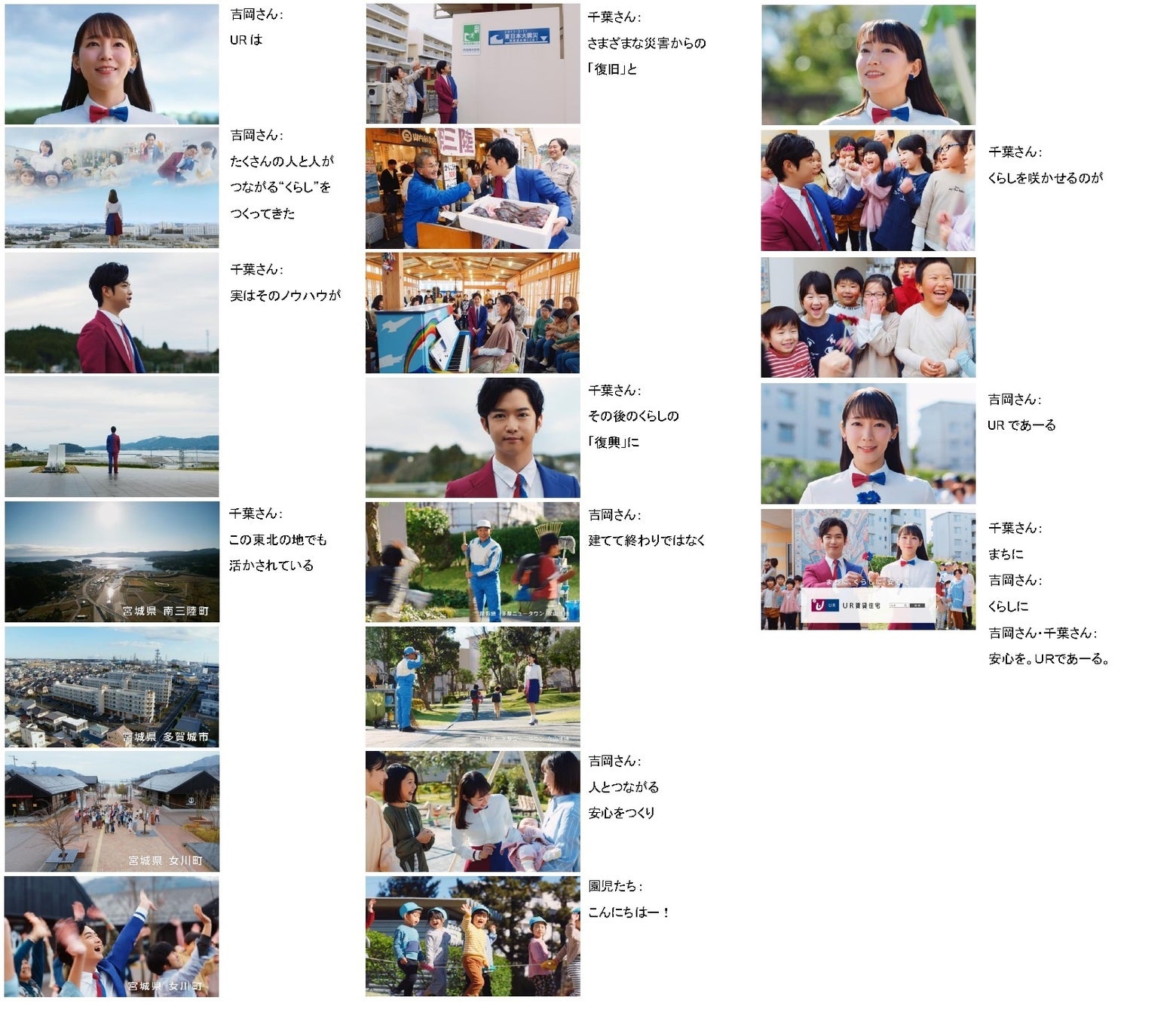最新作では「URであーるガール」「URであーるボーイ」としてイメージキャラクターを務める吉岡里帆さんと千葉雄大さんが、URの復興支援・まちづくりを紹介し、安全・安心を築き上げるURの魅力を紹介します。