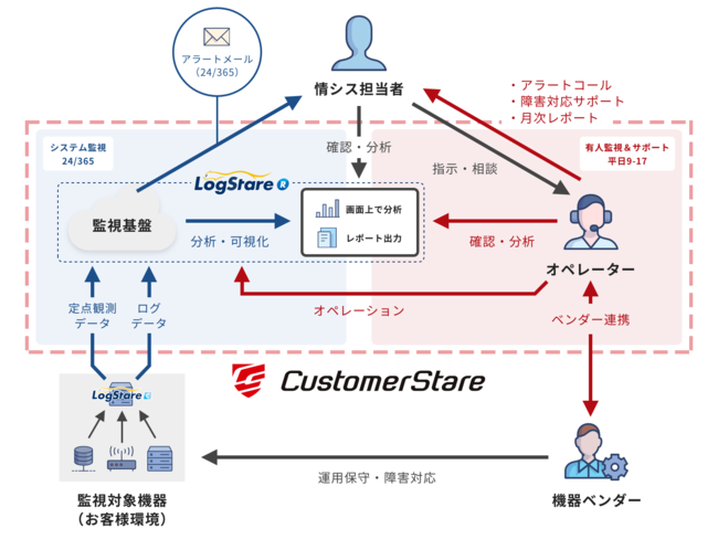 「CustomerStare」は、コロナ禍によってテレワークやDX等が急速に普及するなか、特にIT人材不足を課題に抱える中小企業を対象に、キャリアヴェイルの人材派遣サービスで培ったITインフラの専門的なスキルとセキュリティ運用の知識を有効に活かしたITインフラ監視のアウトソーシングサービスです。