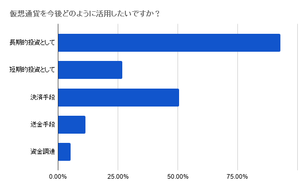 仮想通貨の運用方法については、「長期投資」目的が多数で、「決済手段」や「送金手段」としての使用も想定されています。