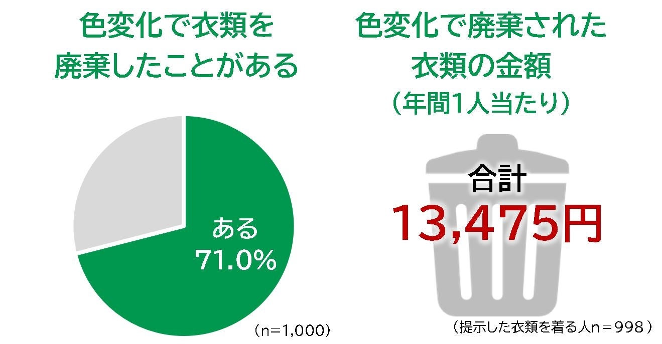 色変化を理由に衣類を廃棄したことがある人は約7割にもおよびます。