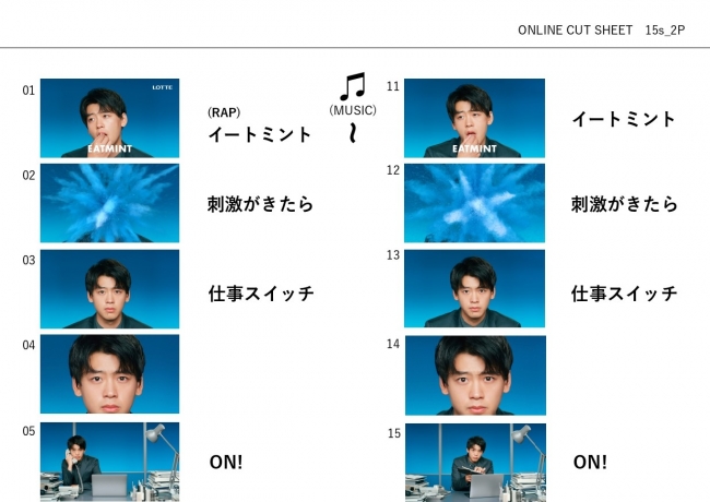 デスクに向かいながらも、仕事のやる気が出ない様子の竹内さん。「EATMINT」を1粒口に含むと、清涼感が目の前で一気に弾け、その刺激に表情が一変します。刺激を感じた竹内さんは、キリっとした表情に変化すると、たちまち仕事のスイッチがONになり、仕事をテキパキとこなしていきます。MCハマーさんの楽曲のリズムに合わせて、スイッチがON!になる竹内さんにぜひご注目ください。