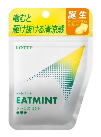 噛むと溶けて瞬間的に強い清涼感が広がる、噛んで食べるタブレットです。  「EATMINT」と「EATMINT<シトラスミント>」の2種類のフレーバーが楽しめます。