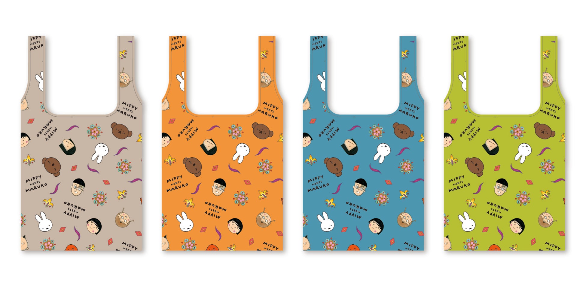 ◆エコバッグ miffy meets maruko (左から)GY/OR/BL/GR 各1,760円(税込)