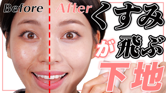 本動画では、元美容部員の和田さん。が色ムラやくすみで悩む方の為におすすめしたい「1本で簡単に肌をトーンアップしてくれる下地」について紹介しています。すっぴんの状態からご自身の顔半分だけを実際にメイクして変化を見せながら、メイクの細かいポイントについて解説するといった内容でお届けしています。