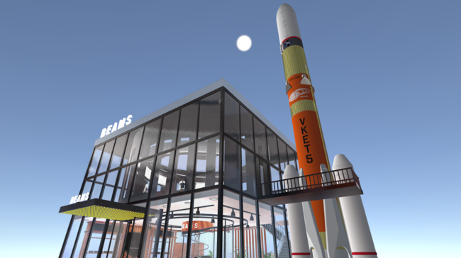 JAXAとの取り組みをイメージした巨大オリジナルロケットも展示。BEAMSの特色を随所に織り込んだユニークなブース展開を行う。