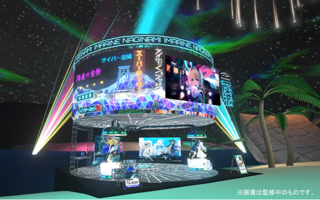 アイマリン、ナギナミの世界観を表現したブースを出展。ブース内では、アイマリン&ナギナミの楽曲で誰でも「歌ってみた」を体験できる特設のど自慢スペースを設置。ブースの大型モニターでは、2020年12月16日に発売するアイマリン2ndSingle「TheBoon」のMusicVideoや、今年8月の「VirtuaREAL.02」ライブで初登場となったナギナミのオリジナル曲「Dreamin’ Summer Girl」、「クロスエメラルド」のMusicVideoを随時放映致します。