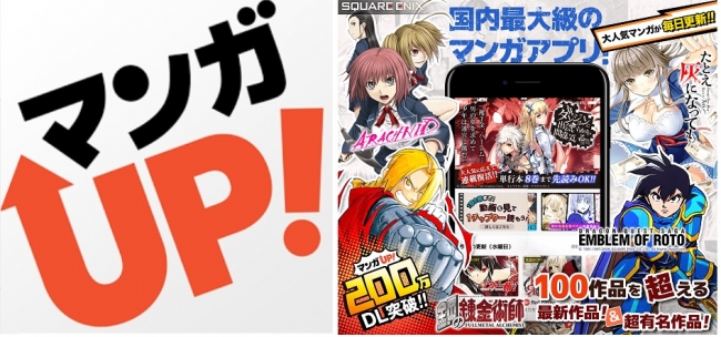 「マンガUP!」は月刊「少年ガンガン」をはじめとしたスクウェア・エニックスが発行する全誌から作品を選抜し、 常時100以上の作品が読め、毎日更新をしているマンガアプリです。10代、20代の男性をメインユーザーとして堅調に成長しており、この度200万ダウンロードを突破しました。