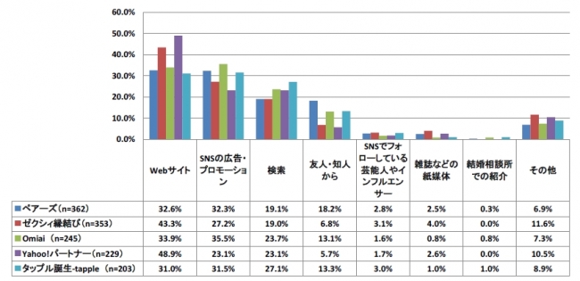 認知経路として割合の高いものを見ると、婚活目的のアプリは「Webサイト」、恋愛目的のアプリは「SNSの広告・プロモーション」が多いと言えるでしょう。また、友人・知人からの紹介が認知と利用での順位の差に繋がっているのではないかと考えました。@コスメのような、マッチングアプリの口コミまとめ比較サイトがあっても面白いと思います。