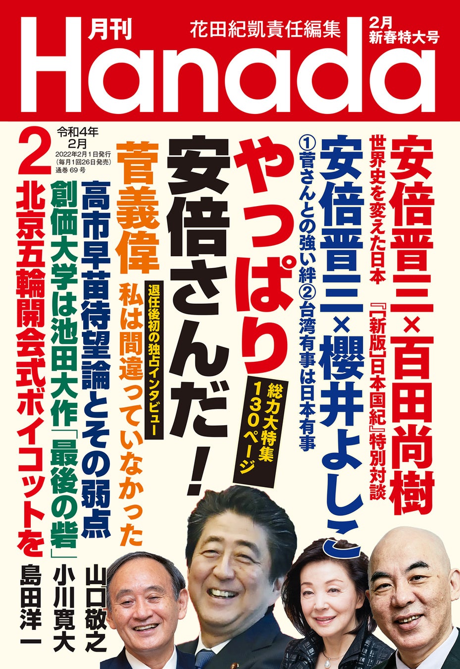 安倍元総理と菅前総理が12月20日(月)発売の月刊『Hanada』22年2月号(飛鳥新社刊)において、国民の疑問にすべて答えます!