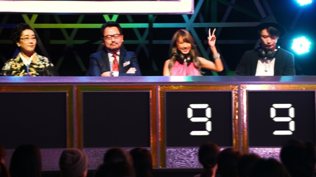 得点画面を追っていくとなんと、審査員全員が「9点」を選択。そして総合得点画面には「Qoo10」の文字。紙吹雪が舞う中、その結果に大喜びする川口さん。