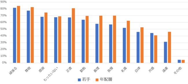 重要だと思う価値観は 年代にかかわらず「頑張る」が1位