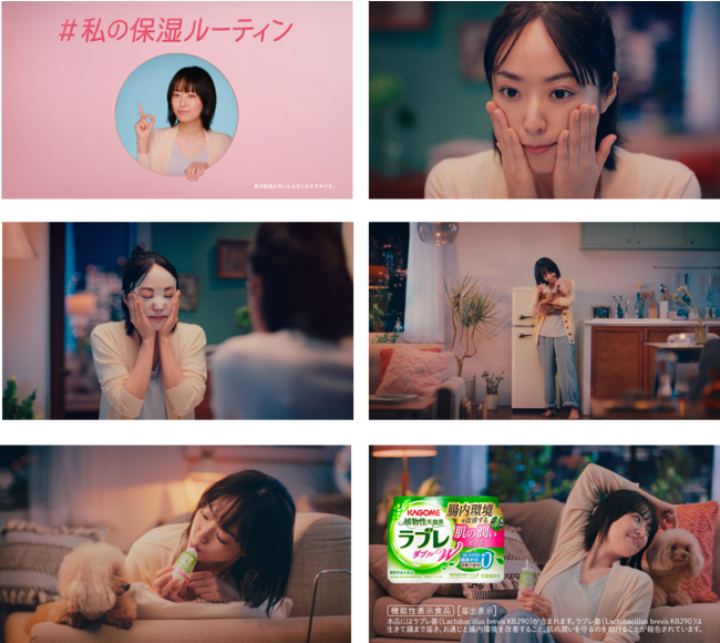 本CMでは、「#私の保湿ルーティン」をテーマに、井上真央さんが化粧水を塗ったり、パックをしたりするという一連のルーティンの仕上げに「ラブレダブル」を取り入れている姿を描いています。