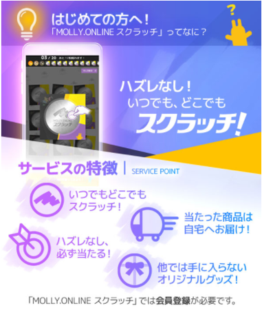 また、本年より新しくサービスを開始したオンラインサービス「MOLLY.ONLINE スクラッチ」において12月24日(金)より当社限定のオリジナルグッズが当たるオンラインスクラッチくじを展開いたします。