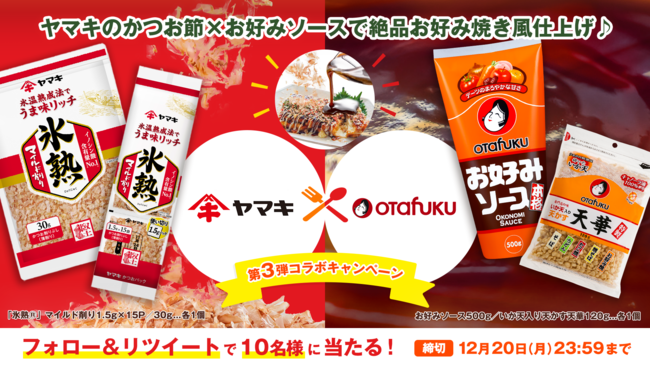 【第3弾】ヤマキ「かつお節(氷熟シリーズ)」×オタフクソース㈱「お好みソース・天かす」