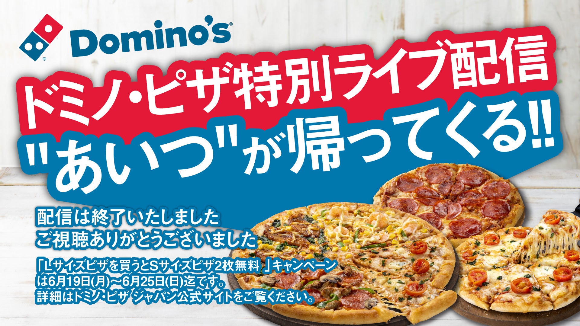6月19日(月)から始まる「Lサイズ1枚買うとSサイズピザ2枚無料」キャンペーンに先駆け、6月18日(日)午後8時から午後9時に、ドミノ・ピザの公式SNSにて、ドミノ・ピザ初の特別ライブ配信を行いました。