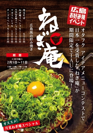 広島お好み焼の多様性や奥深さ、そして店舗ごとのこだわりの違いを味わって体感いただくことを目的に、東京・銀座のひろしまブランドショップTAU内に、オタフクアイデアメニューコンテストで日本一の受賞歴のある「ねぎ庵」が期間限定で初登場します。