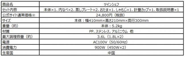 一度に最大4品ほったらかし調理!毎日の食卓がラク~に充実。1台でご飯とおかずが同時にできる自動調理鍋「ツインシェフ」発売