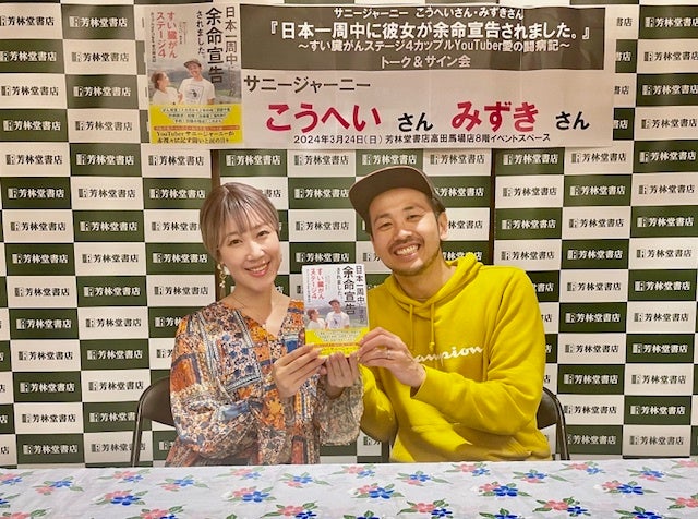 2024年3月24日(日)、東京都新宿区の芳林堂書店高田馬場にて『日本一周中に彼女が余命宣告されました。すい臓がんステージ 4カップルYouTuber愛の闘病記』(双葉社刊)出版記念イベントが実施された。