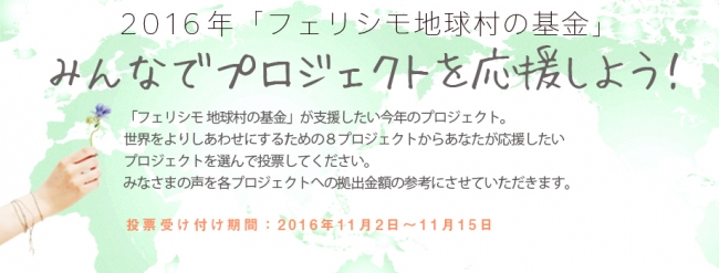 「フェリシモ地球村の基金」の投票に参加して、「世界をしあわせにするプロジェクト」を応援しよう。【投票期間 2016年11月2日~11月15日】