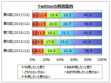 Twitterの利用率は2割強。利用意向は2割、投稿・返信をする層では9割、閲覧・フォロー中心層では7割弱、非登録者では2~4%