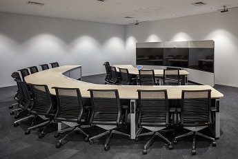 全ての社内会議室には最新のビデオカンファレンスシステムが搭載され、海外オフィスとのミーティングを簡単に行うことができます。対面で会話しているかのような体験ができるテレプレゼンスシステムを備えた会議室もあります。