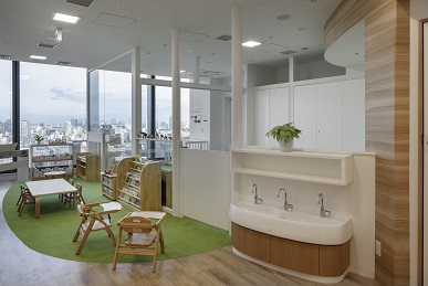 0~2歳の乳幼児を預けることができる事業所内保育園を新設。教育と保育を組み合わせた、0歳児からの「エデュケア」を実践し、1人ひとりに向き合いながら子どもたちの才能や可能性を引き出し、グローバルに活躍できる人間の育成に努めます。保育士と保護者はLINEを使って子どもの様子や、登園・持ち物等の連絡を行う予定です。子育て中の従業員は安心して子供を預け、仕事に集中することができます。(運営:株式会社ポピンズ)