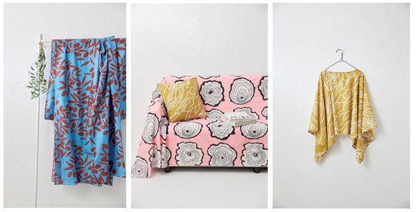 マルガレータ女史のテキスタイルファブリックや、ポンチョをはじめ、そのほかにもオリーブのプレートや、世界の樹木のウッドビーズなどの木のアートピースなど。