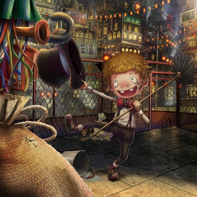 このプロジェクトのために、新たに6枚、作品を描き下ろしていただきました。これらの新しい作品は、すでにある『えんとつ町のプペル』のページの間に、「おそらくあるであろう時間」を表現した、絵本の中に存在するであろうシーンです。