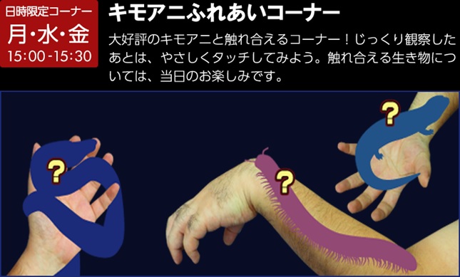 生きていくための創意工夫が詰まった、とっておきの「キモい」フォルムや生態の貴重な生き物たちを、背筋をゾクゾクさせながらじっくりと観察することができる、家族連れやお友達同士、カップルなど多くの方に人気の一風変わったイベントです。