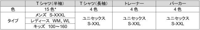 ・ 商品展開と色: