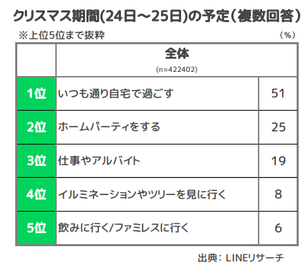 20代独身男性の約4割が「クリぼっち」!?LINEリサーチ、2018年「クリスマスの過ごし方」調査を実施