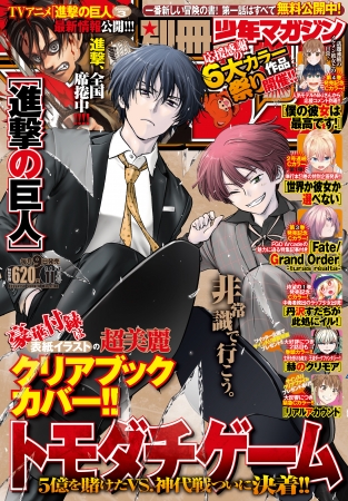 巨人がすべてを支配する世界において、まだ見ぬ外の世界に憧れる少年・エレンらと巨人との戦いを描いたダークファンタジー漫画。2009年より別冊少年マガジン(講談社)で連載を開始。2013年にはTVアニメ化され、2018年7月からアニメSeason3が放送された。